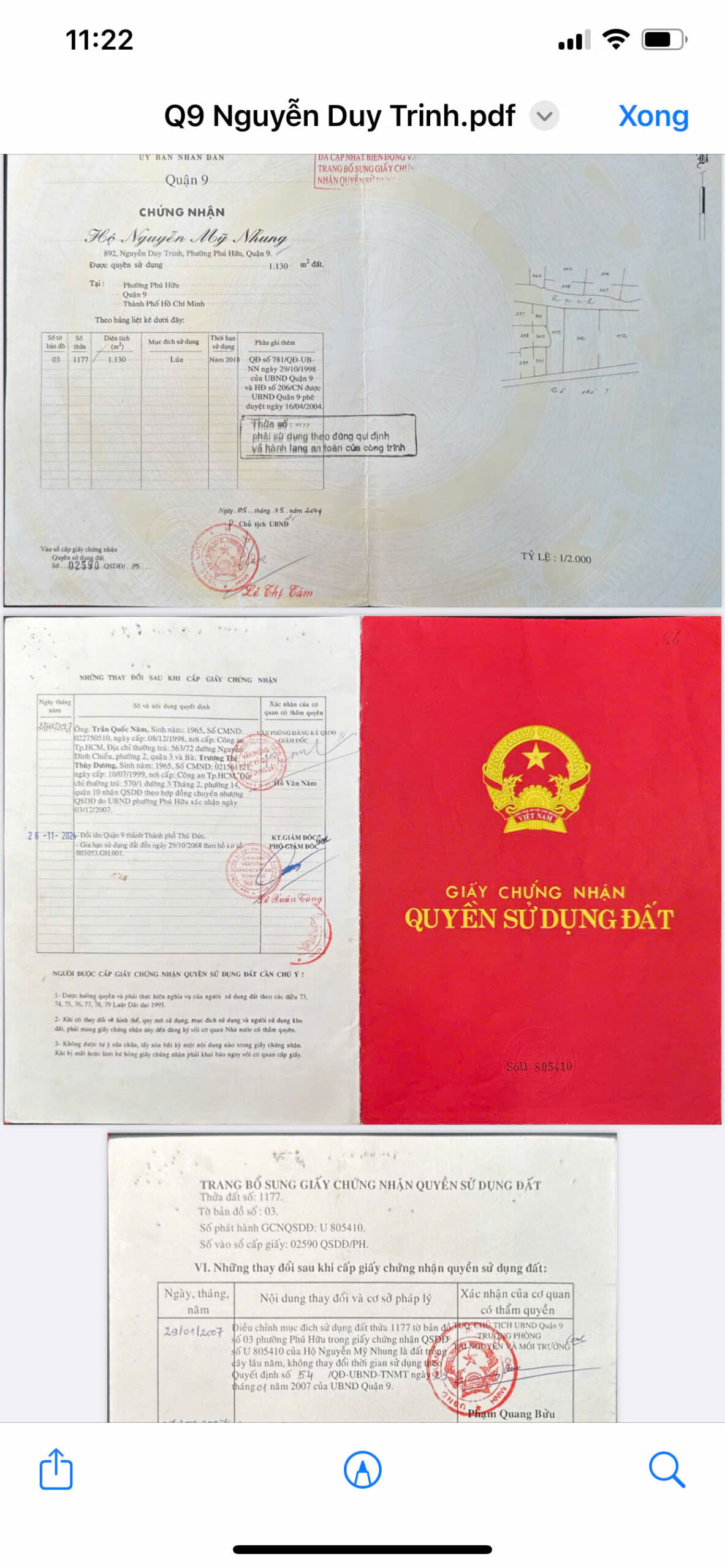 • Thửa đất số 1177, tờ bản đồ số 03, Phường Phú Hữu, Q.9 cũ (nay là TP. Thủ Đức).